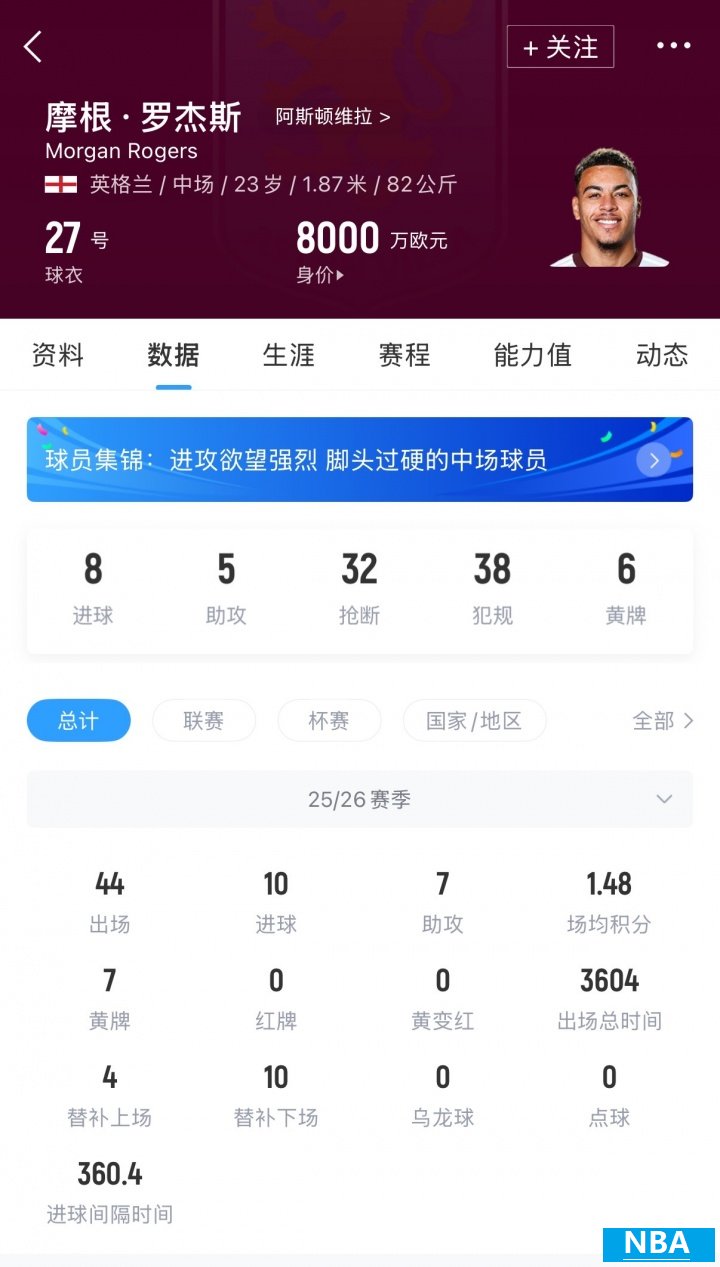 据英媒《泰晤士报》报道,多支英超球队有意维拉球员罗杰斯,维拉对他的估价超过8000万镑。
